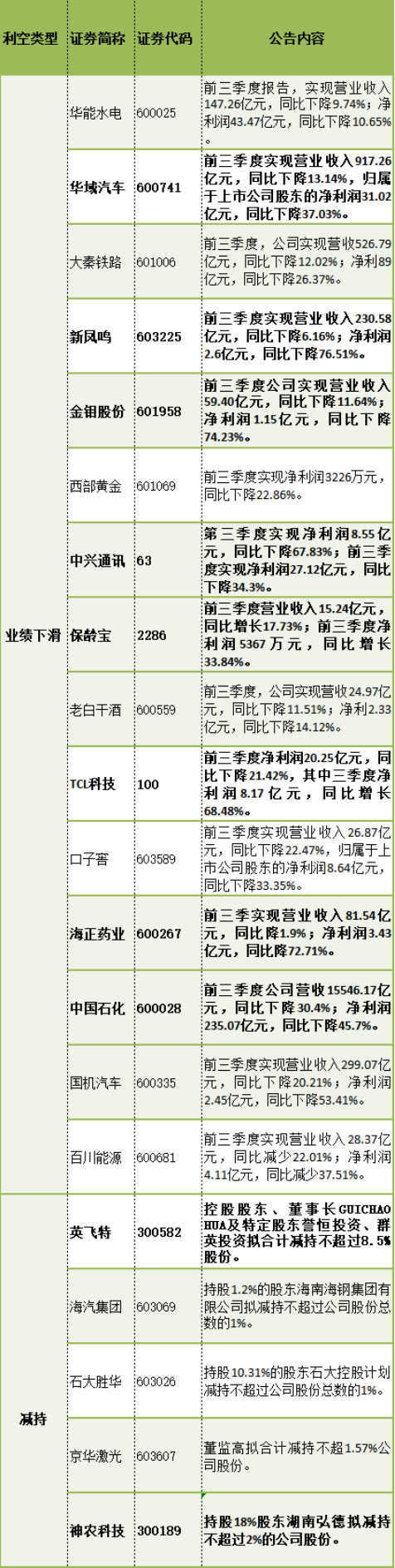 10月28日,*ST凯迪公告,公司于2020年10月28日收到深圳证券交易所《关于凯迪生态环境科技股份有限公司股票终止上市的决定》。公司股票将于2020年11月5日起进入退市整理期交易。股东华宝信托拟减持不超过1.18亿股,不超过公司总股本3%。