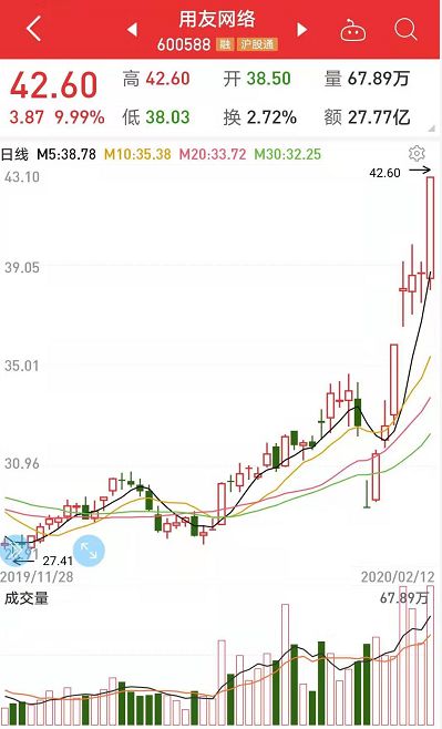 鼠年春节进入第8个交易日,在首日跌停后迅速填补深坑的用友网络涨势逼人,今日该股强势涨停,收盘价创历史新高,A股市值突破千亿元。在春节前夕,用友网络发布业绩预告数据,预计去年净利润为10.41亿元至12.85亿元,同比增长70%至110%,其盈利金额将创历史最高水平。