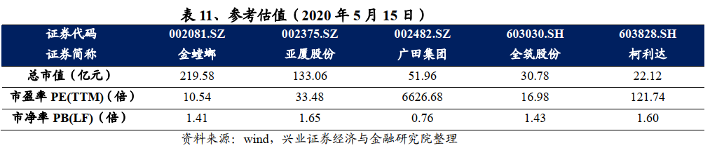 标的方面,金螳螂作为装修行业龙头在装配式装修领域不断深入布局,目前估值处于底部,2020年公装行业需求有望好转,公共房建类项目增多,集采和家装调整驱动公司盈利能力提升,业绩加速。亚厦股份是装配式装修领跑者,同时参与行业规则制定,积极与地产商合作,装配式装修订单加速将驱动业绩释放。