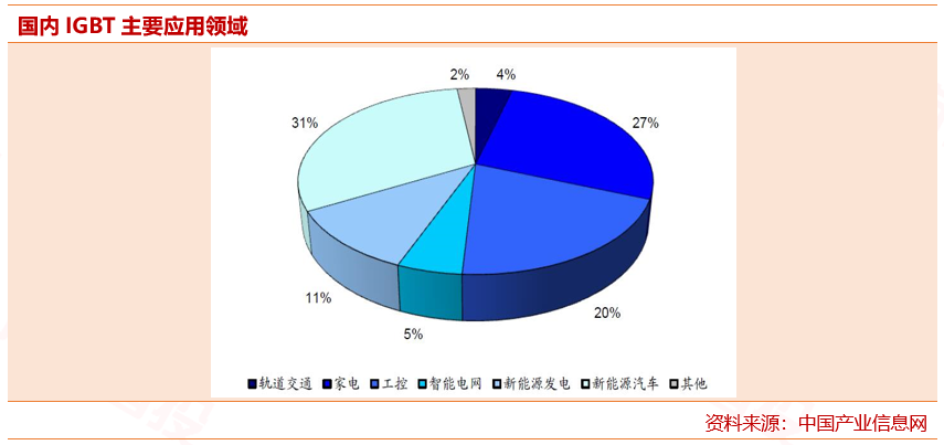 作为一种新型电力电子器件,IGBT是国际上公认的电力电子技术第三次革命具代表性的产品。结合中国产业信息网,作为新型功率半导体器件的主流器件,IGBT已广泛应用于工业、4C(通信、计算机、消费电子、汽车电子)、航空航天、国防军工等传统产业领域,以及轨道交通、新能源、智能电网、新能源汽车等战略性新兴产业领域。