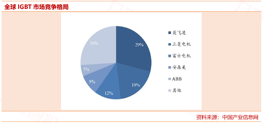 目前,全球IGBT市场主要由英飞凌、三菱电机、富士电机、安森美和ABB等海外厂商占据,根据中国产业信息网的数据,全球前五大IGBT厂商的市场份额合计达74%,同时,从400V及以下的常规IGBT市场到4500V以上的高端IGBT市场,海外厂商的IGBT产品的市场优势地位均十分明显。