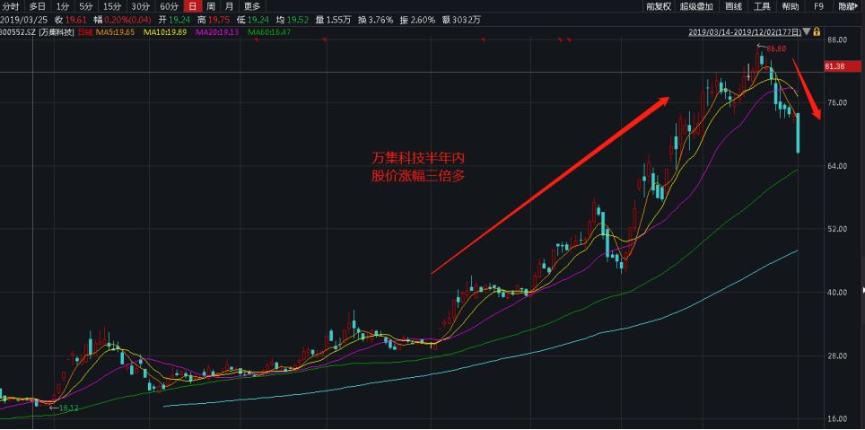 值得注意的是,此前万集科技还因为ETC行业政策红利而大获资金追捧,短短半年时间,股价上涨近三倍,今年以来最高涨幅近5倍。数据统计显示,从今年5月17日至11月19日,万集科技股价从23.11元一路上涨至最高86.80元,股价涨幅超270%。而过去两周,资金开始出现大幅抛盘动作,股价跌幅明显。