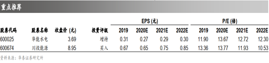 综上,华泰证券建议关注水电股的价值重估,看好部分已经步入成熟期的高分红收益率水电企业,优选在建拟建装机投运、拥有资产注入预期,有望获取超额收益的成长性的标的。对标:华能水电、川投能源。
