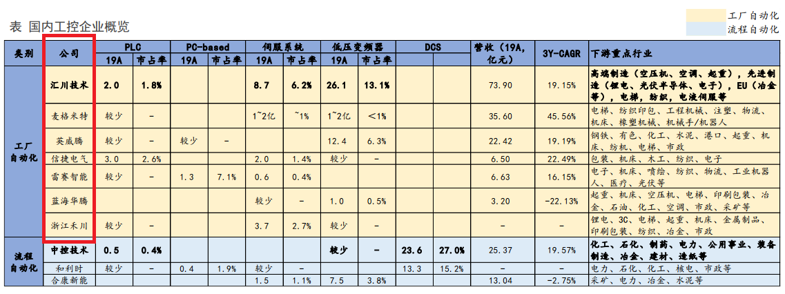 当下的工控行业仍是外资盘踞(占比6成以上)、内资追赶。国内工控企业目前处于起步早期,内资格局呈现的是龙头引领、新星跟进的局面。