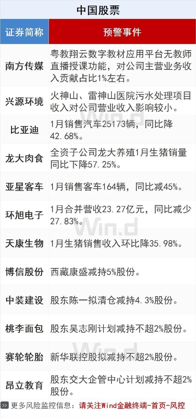 每日投资预警 | 多家公司营收下降、股东减持