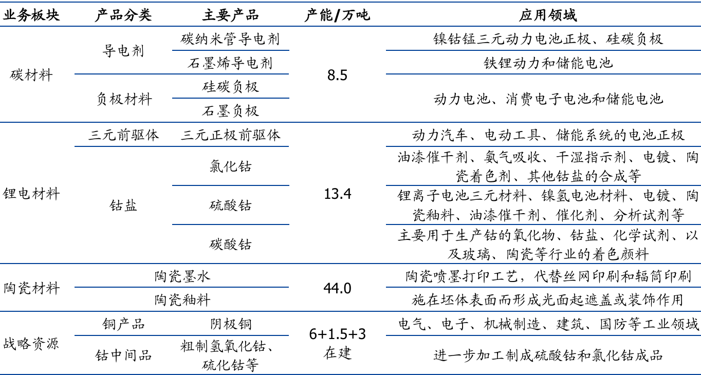 公司目前在全球建设有四大生产基地:广东清远佳纳、赣州龙南佳纳、安徽芜湖佳纳、非洲刚果(金)基地,产能优势明显。2021年,通过增资MMT,加大应上游钴中间品和电解铜产能的布局,解决了原料供国瓶颈问题;通过在印度尼西亚设立 PT.JIANA ENERGY 公司(印尼佳纳),为公司锂电材料业务的发展提供可靠的镍资源保障,打通并进一步优化公司原材料供国,增强公司核心竞争力。截止2024年报,公司已形成“英德+龙南+芜湖"三大三元前驱体生产基地,并配套钴镍盐产线。其中英德基地已形成年产4.4 万吨三元前驱体产能,龙南基地已形成 5 万吨三元前驱体产能,芜湖基地已具备3 万吨三元前驱体产能。