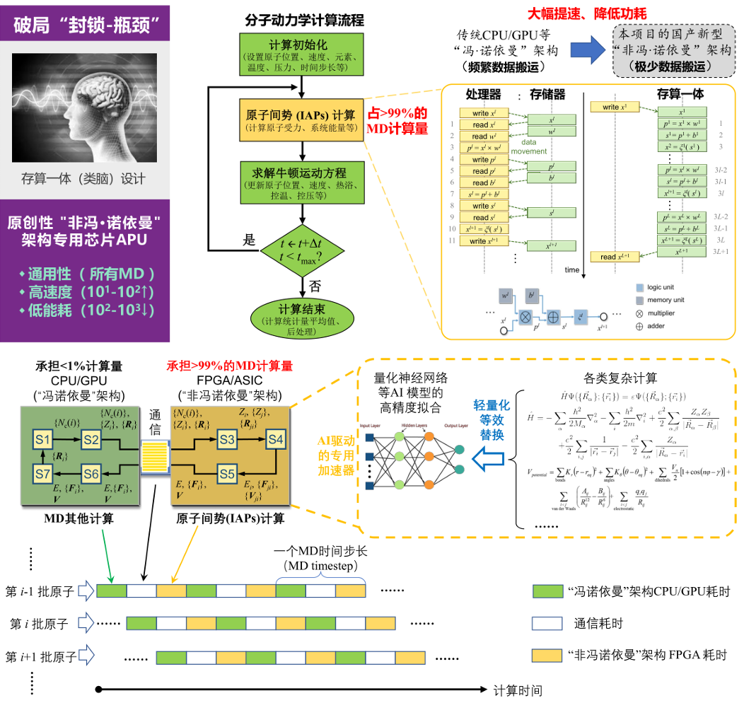 图:道氏技术芯培森APU芯片“存算一体”架构大幅提升MD计算速度并降低能耗 |