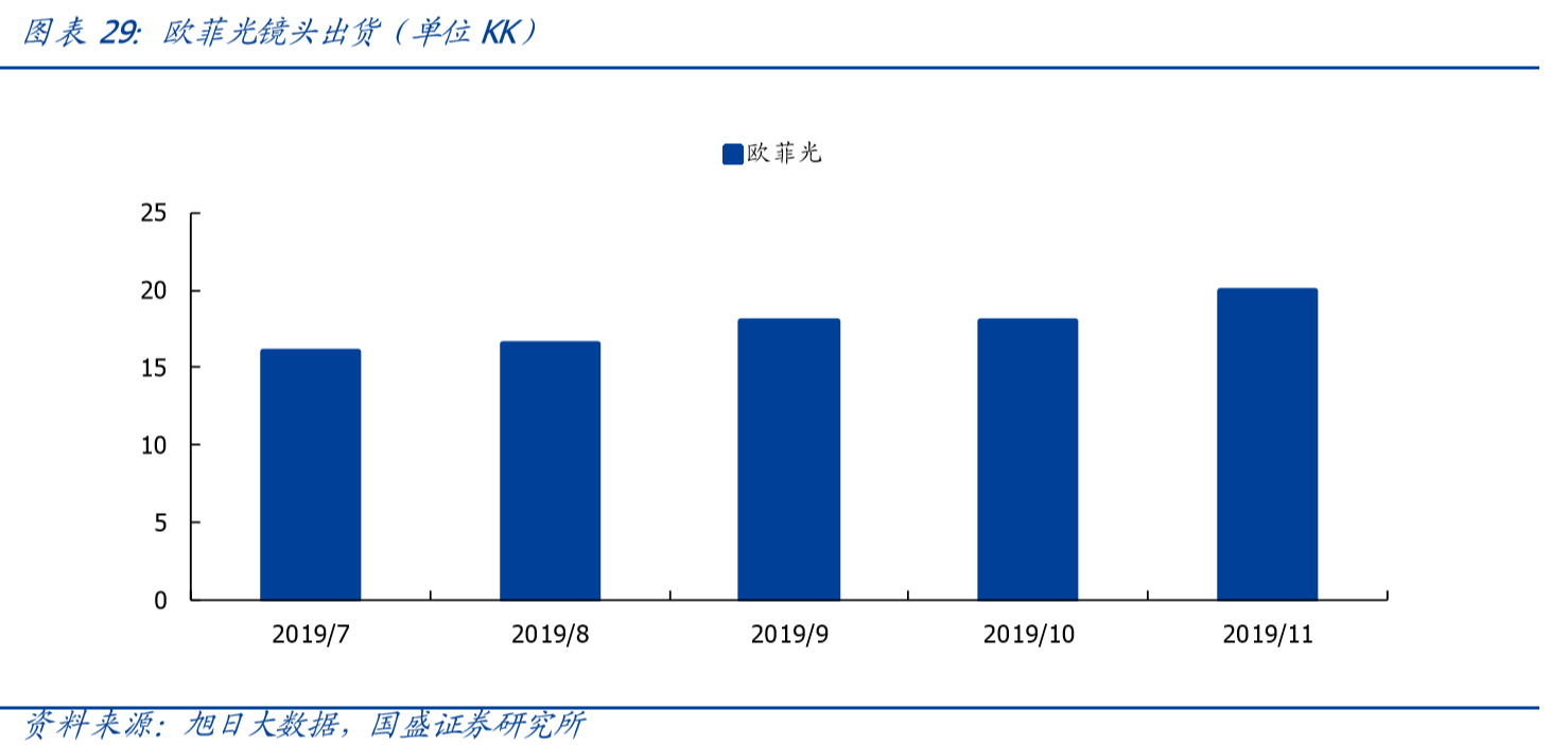 欧菲光2017年11月设立子公司进军光学镜头产业,进一步深入布局光学镜头的研发和制造,继续向产业链上游进行延伸发展,预计2020年镜头的自供率将进一步提高,镜头的产能将会持续扩大。此外公司未来重点布局VCSEL、DOE等上游的关键元器件,打造光学领域的垂直产业一体化布局,利于公司稳固供货能力并提升成本控制能力,加强产品竞争实力。