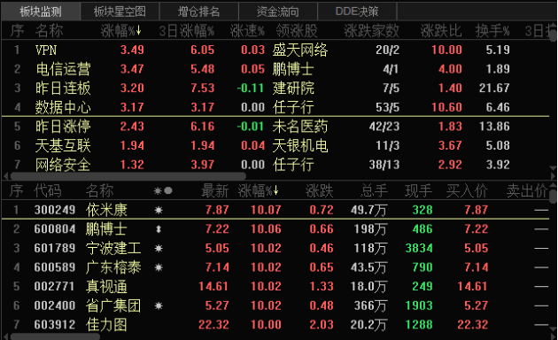 今日两市低开低走集体收跌,新基建分支板块数据中心概念股全天表现强势,任子行、依米康、鹏博士等多股涨停。