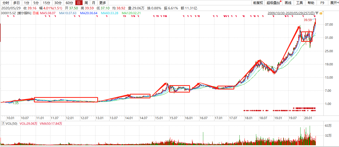 我们来看具体案例,比如,核心资产中的爱尔眼科: