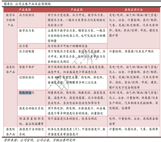 ④ 温度校准产品快速成长,成公司重要的利润增长点