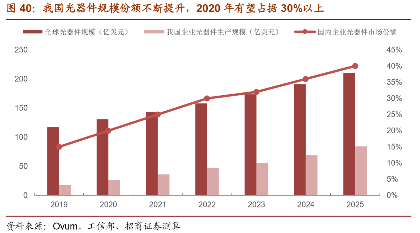 公司已实现5G前传、中传、回传光模块全覆盖,未来几年有望深度受益于5G建设。在25G灰光模块的设计上,公司具有10G光芯片超频和25G光芯片两种解决方案。