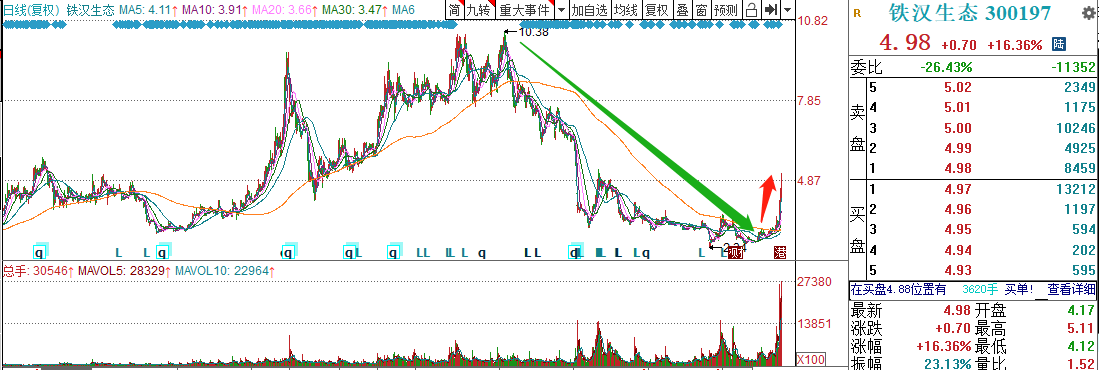但是,在板块全线飘红背后,股友们挑选个股更需擦亮双眼。以固废板块为例,今日大涨个股除惠城环保股价26元稍高,其他涨幅超10%个股均是10元以下,甚至是5元以下的个股。创业板低价股炒作已有数日,但翻看这些爆炒股,走势基本与下图铁汉生态类似,处于长期下跌周期,大幅亏损个股比比皆是。从风险角度,我们更希望投资者能去选择一些基本面良好的环保品种。
