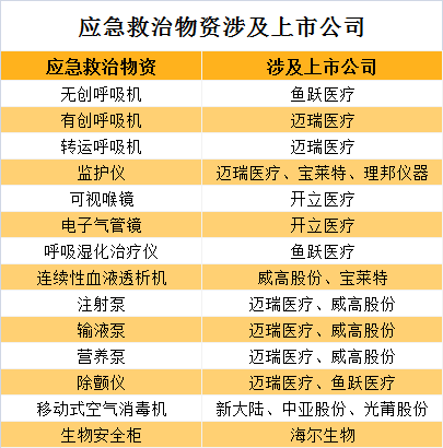 目前,A股主业设计应急救治物资储备部分上市公司名单如下: