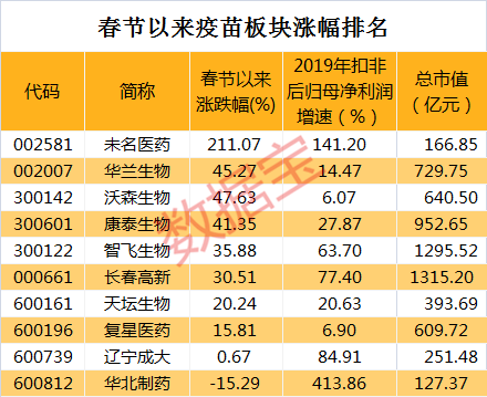 证券时报·数据宝统计显示,自春节以来,多数疫苗股表现良好,剔除股价翻三倍的未名医药外,平均涨幅仍有24.67%,跑赢大盘29个百分点。