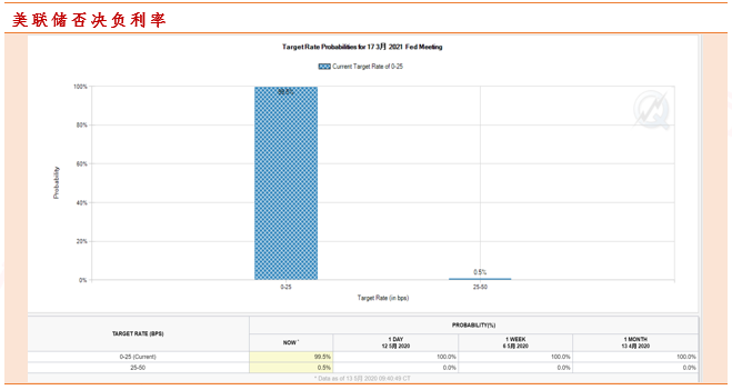 鲍威尔强调美联储将充分使用所有政策工具来避免上述情形发生。但针对近期联邦基金期货市场给出的负利率定价,鲍威尔明确给出否认信号,其表示”美国联邦公开市场委员会对负利率的看法没有改变。负利率不是我们所关注的,美联储打算继续使用它已经尝试过的工具。之前关于负利率讨论的会议记录显示,所FOMC成员都反对负利率。且复苏的过程会很漫长,且可能将流动性危机转化为偿债危机。”最后鲍威尔再次强调额外财政刺激的必要性并表示将由国会最终权衡。
