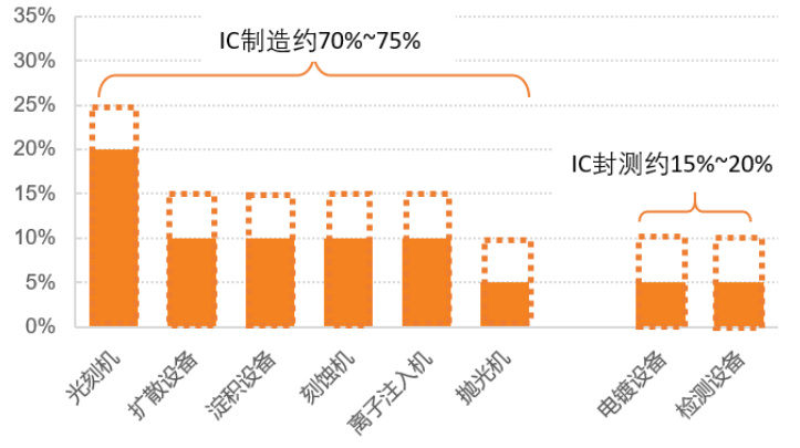 1:前段设备占比最大(75%),但基本被美、日厂商垄断。