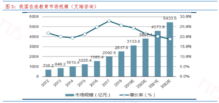 在线教育领域,为应对肺炎疫情,教育部宣布2020年春季开学延期,并提倡“停课不停学”,鼓励学校和培训机构将教育教学转移至线上场景。国内一些科技巨头、教育公司和企业服务公司,也针对教育行业提出了或免费或减免的支援方案,在线教育以前所未有的姿态受到全国的关注。预计疫情完全过去之后,在线教育市场结构可能发生变化,中小学学生使用在线教育的比例有望上升,在线教育的发展进入一个新时期。根据艾瑞咨询数据,预计在2022年中国在线教育市场规模将达5433.5亿元。