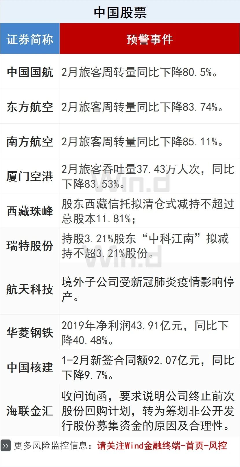 每日投资预警 | 多家上市航空公司2月运营数据大幅下滑