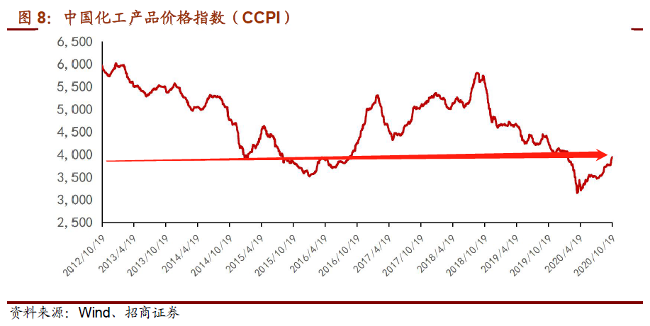 2)从18 年四季度到20 年二季度,由于需求走弱,供给边际上有所增加,化工品价格进入了下行周期。20 年上半年,中国和海外相继受到疫情影响,很多化工品价格都创下了历史新低、或者进入历史底部区域。