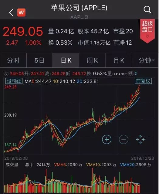 紧随其后,苹果股价创新高。