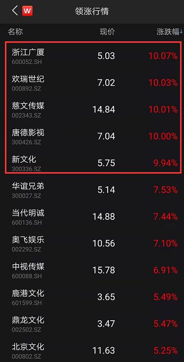 影视指数下多只个股涨停,其中新文化和欢瑞世纪已经连续多日涨停,短短4个交易日上涨40%。