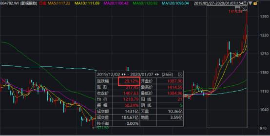 2020年的春节火爆行情似乎启动得有点早。从2019年12月初,影视行业似乎已经开始了本轮的上涨行情,截止到今日,整个板块已经上涨了29.12%。