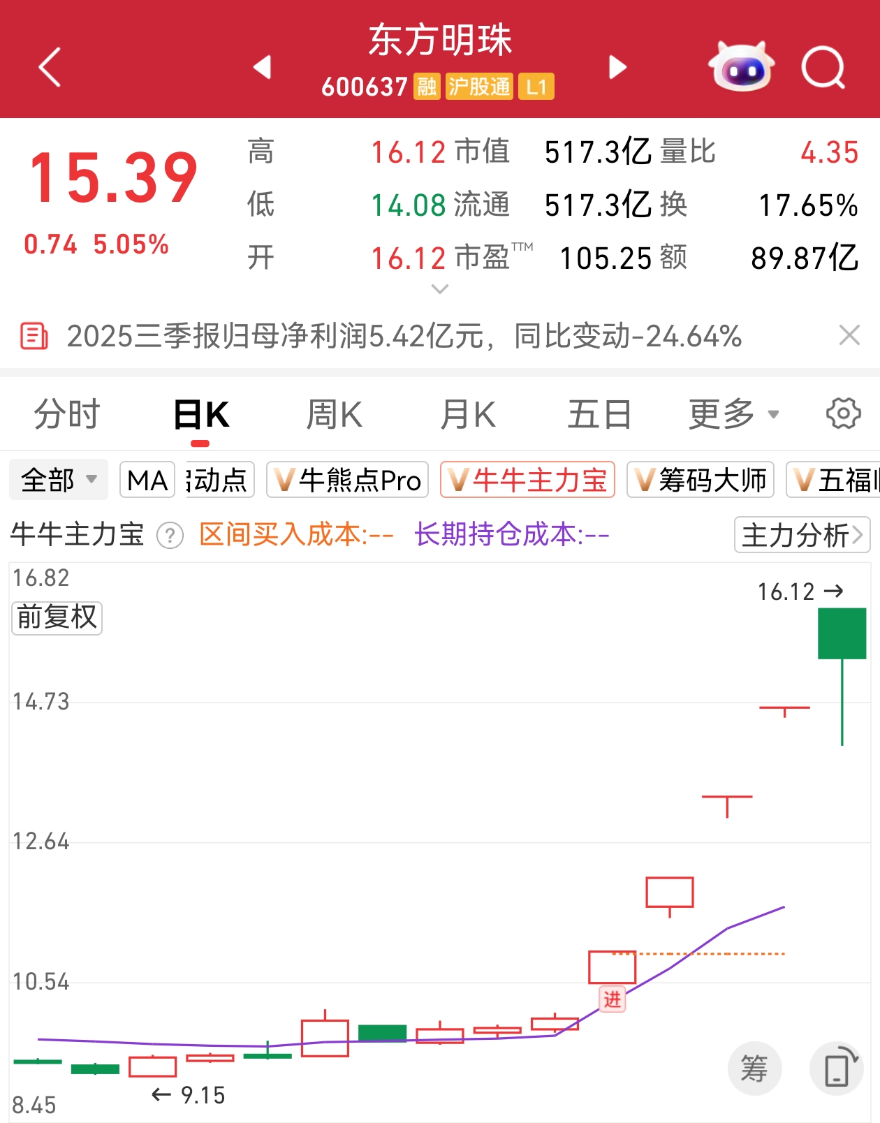 小九注:东方明珠1月7日“牛牛主力宝”显示主力资金“进”,之后强势4连板!