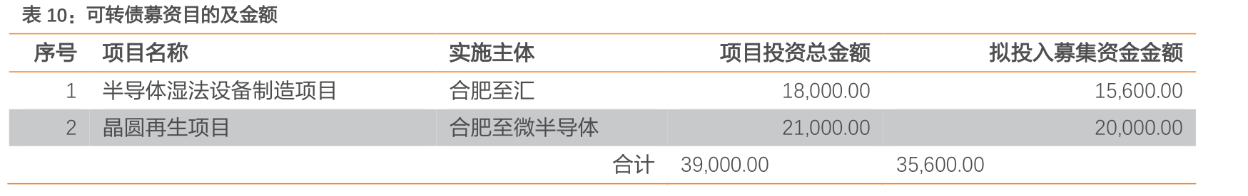 至纯科技2019年12月公开发行可转换公司债券,本次公开发行可转换公司债券主要是拟投资建设的半导体湿法设备制造项目系用于开展半导体湿法清洗设备的生产制造,扩张半导体湿法清洗设备产能。此外,公司拟投资建设的晶圆再生项目系对晶圆制程所需挡、控片进行加工回收、循环再利用的项目。我国晶圆再生领域的市场需求量与供给之间存在较大的缺口。
