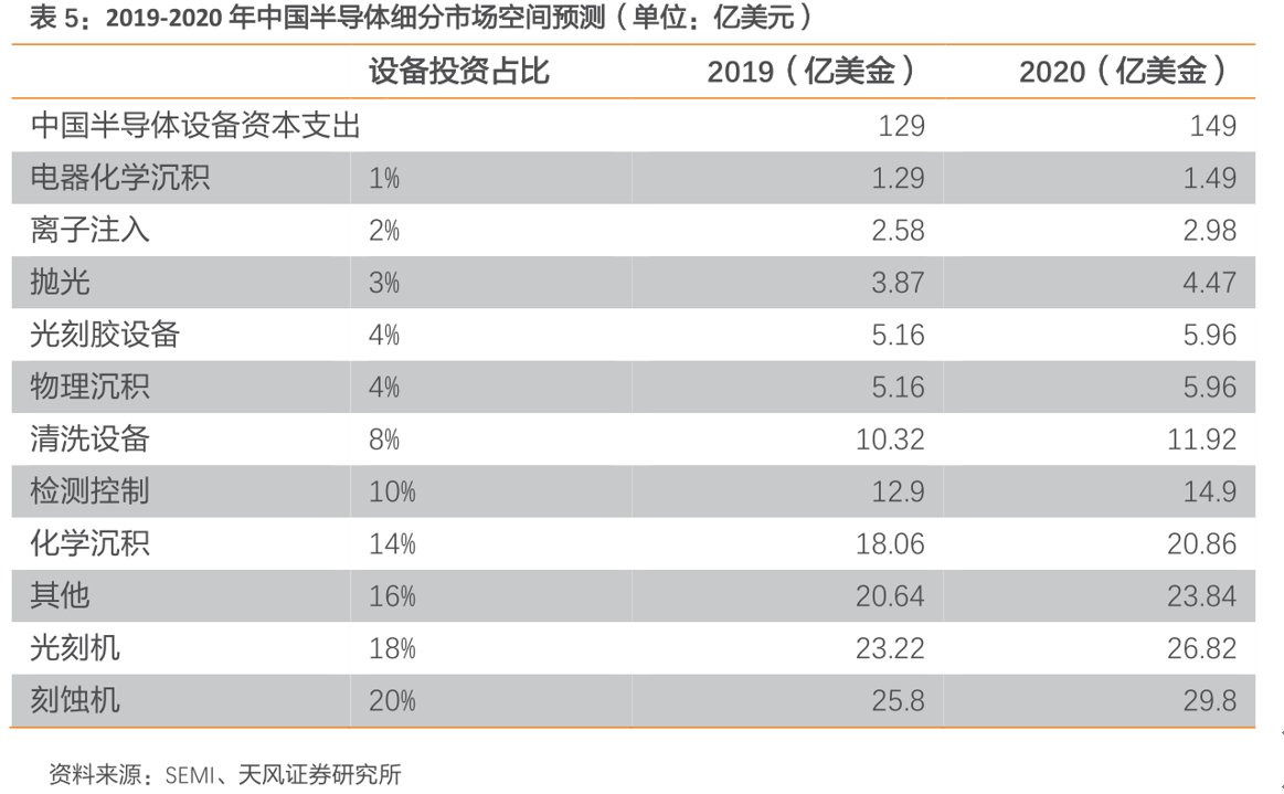 另外,考虑到中兴事件带来的刺激性影响,半导体产业国产化有望加速,分享本轮投资建厂热潮带来的巨大红利。根据SEMI预测,2019-2020年中国设备支出为129亿美元,2020年预计149亿美元。