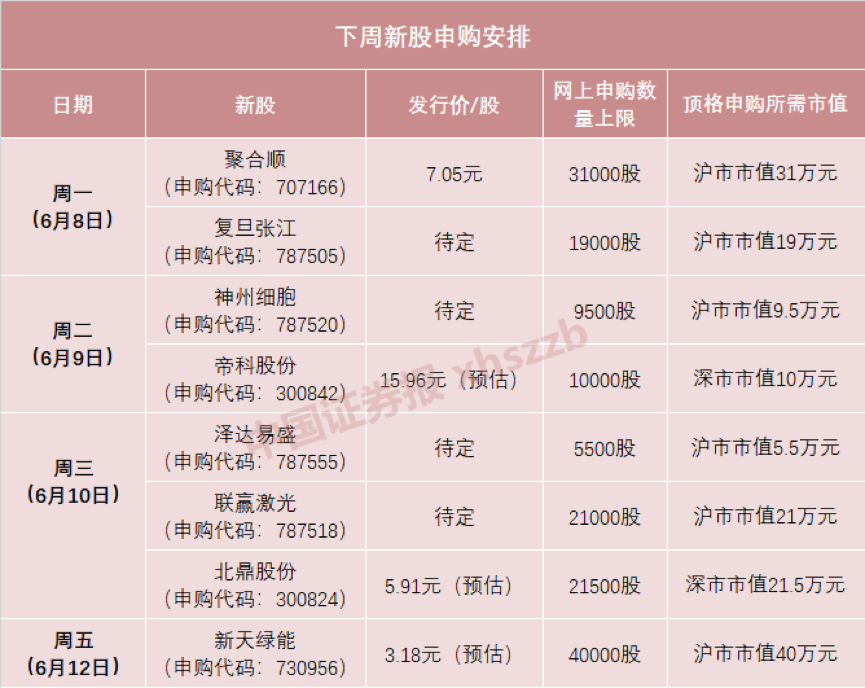 根据新股发行安排,下周将迎来8只新股申购,包括4只科创板新股、2只沪市主板新股、2只创业板新股。