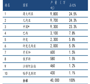 全球铝土矿产能和储量分布 数据来源:国联民生证券 |