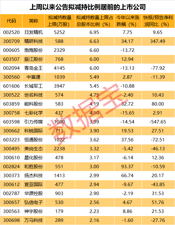 上周至今两市有71家上市公司发布了减持计划,平均每天发布了10份以上的减持公告。