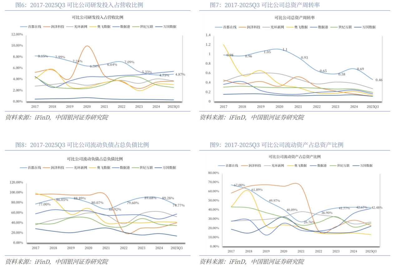 公司的IDC服务转售模式以及算力资源纳管模式均属于轻资产运营,赋予了公司更强的灵活性与成本控制能力,是公司在数据中心运营领域的一大显著优势。我们从资本结构与营运能力的相关财务指标可以看出公司的优势,其显著区别于重资产类公司。