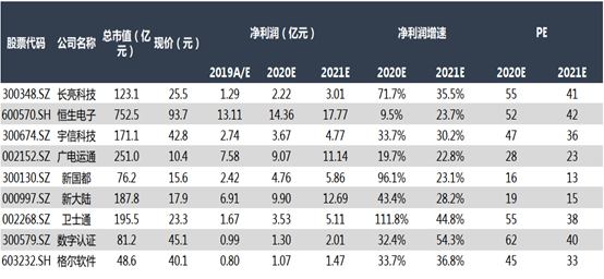 发行环节方面,不包括国有大型银行,IT系统改造和升级需求空间预计20亿元。考虑到国有银行主要是自主研发,未来DCEP全面落地时,城商行渗透较高的银行IT核心系统商受益弹性最大。相关上市公司有长亮科技、宇信科技、高伟达、科蓝软件、恒生电子等。