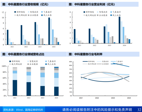 在气象领域,维天信子公司覆盖气象行业全产业链,以及“气象+”农业、能源、交通、应急等广泛的“气象+”行业应用服务,并基于气象行业积累的相关技术、业务模式、市场渠道等资源拓展至海洋、生态、空间天气、人工影响天气、双碳等领域,为特种领域、政府和企业用户提供气象装备以及气象、海洋、生态等行业的技术开发与服务;子公司维天信收入从2021年的1.04亿元快速增长至2024年的5.63亿元,CAGR+75.47%。