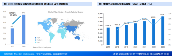 全球数字地球行业市场规模稳定攀升,亚太地区增长显著。据MordorIntelligence数据,预计2025年数字地球市场规模为289.7亿美元,2030年市场规模有望达到543.08亿美元,2025-2030年市场规模CAGR为13.4%。地区分布维度而言,亚太地区数字地球产业增势迅猛,基本超过全球其他区域。