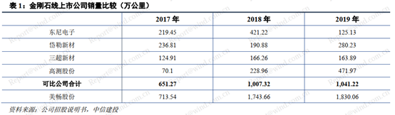 公司重视研发投入,在细线化、快切化、省线化、切割高稳定化等方向不断进步。2019年,公司50微米产品占比已经上升到22.34%。同时,公司积极研发试验金刚石线在精密陶瓷、磁性材料等硬脆材料切割领域以及建材领域的应用,目前已进入小批量出货阶段或中试,未来金刚石切割线应用领域有望延伸,打开新的市场空间。