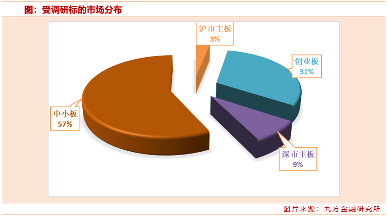 本周(2020.5.9——2020.5.15)共164家机构发起调研,关注到了96家上市公司,超过半数是中小板上市公司,其次为创业板,主板上市公司(沪市+深市)仅11家。