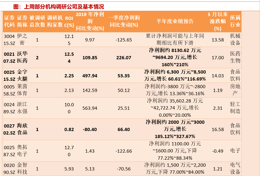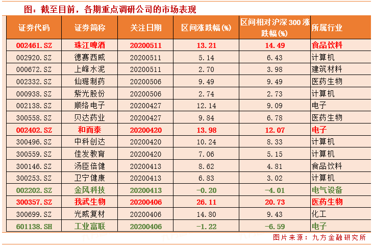 注:信息来源为wind数据库(截止2020年5月15日星期五15:30)以及相关研报。