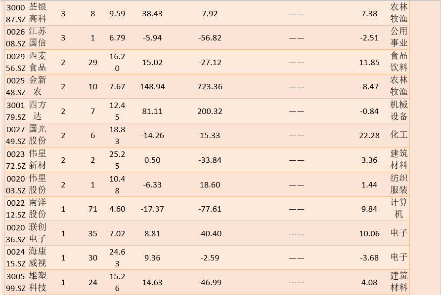 从业绩来看,已有8家公司披露上半年业绩预计,其中,沃华医药预计净利润同比增160%~210%、海欣食品预计净利润同比增185.12%~327.67%、金字火腿预计净利润同比增60.61%~116.69%,增幅较大;莱茵体育、浙江永强预计净利润增长上线分别为36.16%、20%;奥拓电子、金智科技预计上半年净利润同比将下降7-8成。