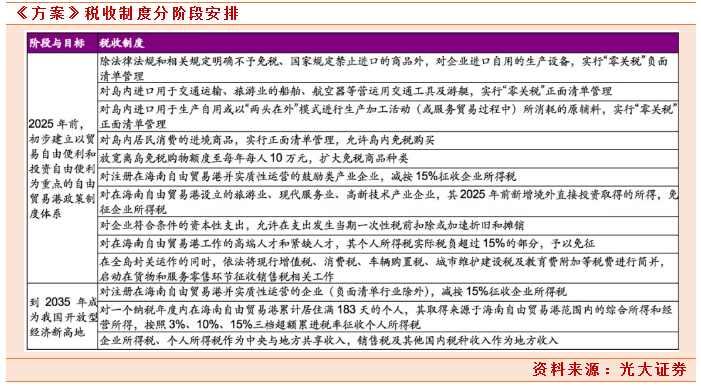 《方案》提到2025年之前注册在海南自由贸易港并实质性运营的鼓励类产业企业的企业所得税率在为15%,到2035年之前则适用于所有负面清单行业除外的注册在海南自由贸易港并实质性运营的企业。2035年前则对海南居民将按照3%、10%、15%三档超额累进税率征收个人所得税,这将对标国际上的低税率地区。