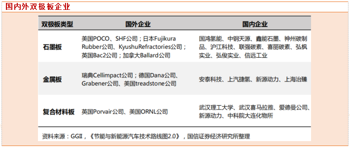 石墨双极板具有质量轻、稳定性强和耐腐蚀性高等特点,但机械性能较差,目前技术最为成熟,基本已实现国产化,但耐久性和工程化有待验证。代表性国外企业有加拿大巴拉德和氢能公司,国内技术水平与国外相当,但厚度通常在2mm以上。