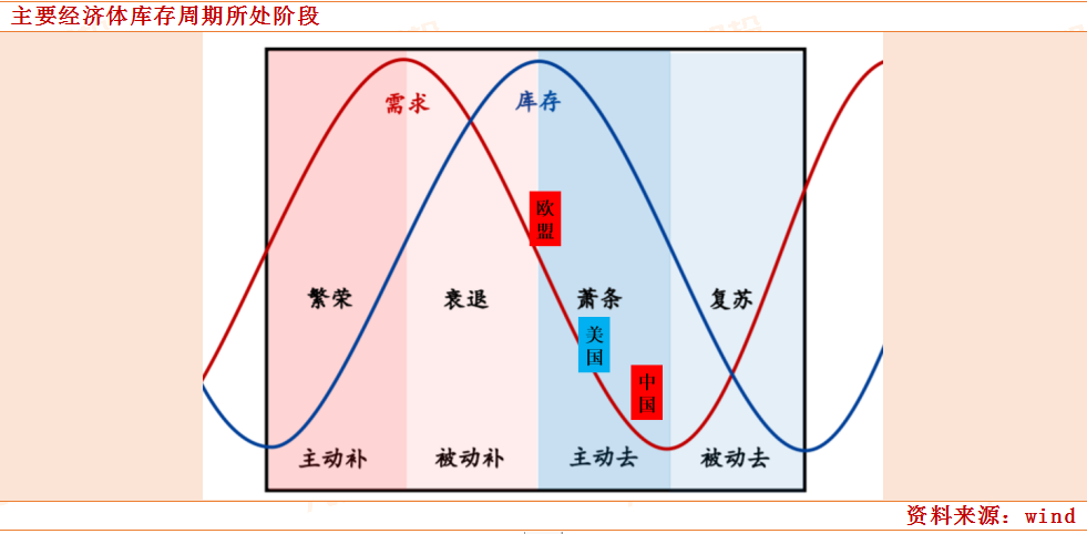 3.欧洲第一库存周期由于疫情解封晚于美国,导致库存周期见峰下行时间稍稍落后于美国,也已于2021年年末见峰下行。