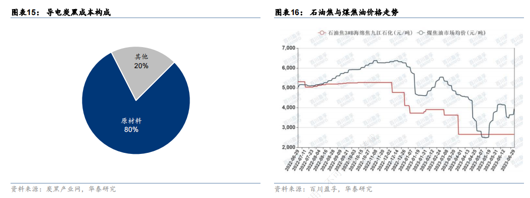 生产工艺方面,导电炭黑的主要壁垒在于反应炉设备的设计,其中炉头中的喷油嘴等部件精度非常关键。生产成本来看,该产品的主要成本构成为煤焦油等原材料,其成本占比达到约80%,且国内原材料端成本低于海外,国产替代可以省去运费成本,性价可期。