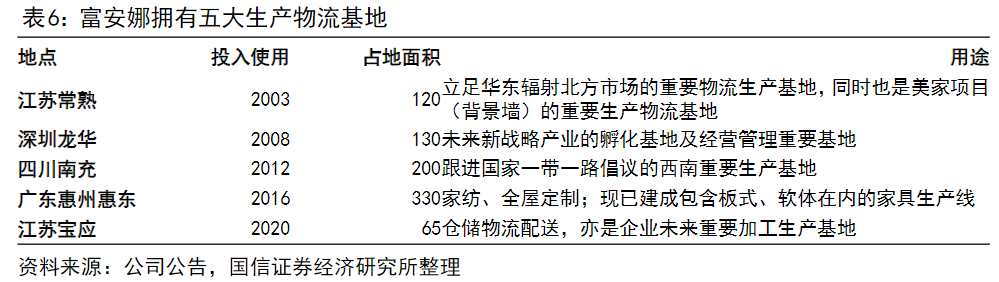 公司拥有深圳龙华总部基地、四川南充家纺生产基地、广东惠州生产基地;拥有扬州宝应、常熟、南充、惠东四大物流基地,截止2022年末,公司仓储面积合计近315亩,总投资面积845亩,通过四大平行仓的布局,提升了物流运输时效和降低了运输成本。
