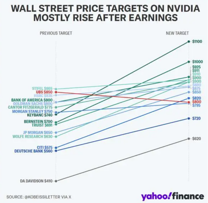 公司季度净利润录得122.85亿美元,同比增长769%;调整后每股收益为5.16美元,同比增长486%,均创历史新高。另外,英伟达还预计本季度的营收将进一步走高至240亿美元,强于分析师预期的218亿美元。