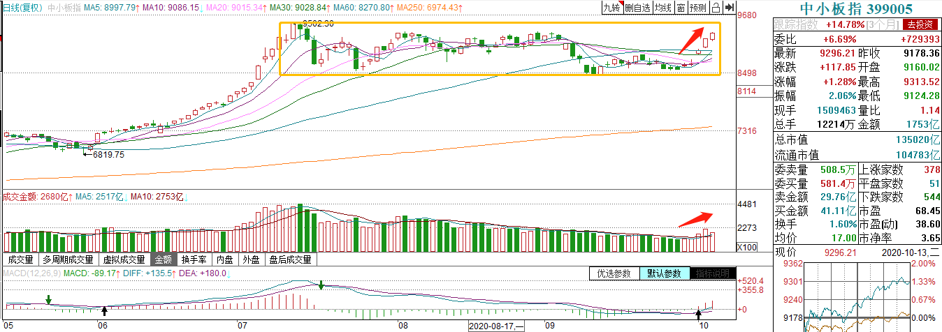 节后连续大涨两日后,指数今日调整,收盘上证指数与创业板均微微翻红。上证与创业板当前仍属良性调整,短暂休息后仍有上攻动能,这里注意调整时间不宜太久。值得注意的是,今日中小板指表现活跃,上涨1.28%再创新高,当前距离前高9502点仅一步之遥。