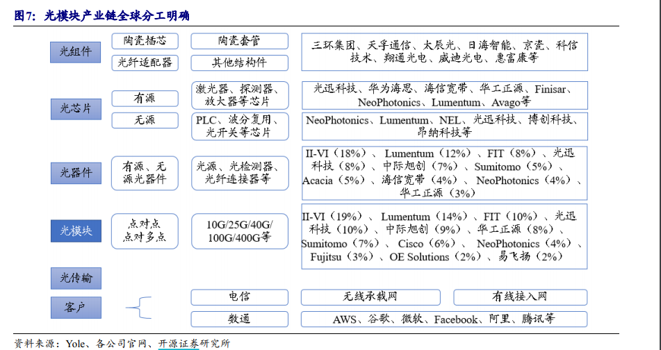 1)在具备光芯片生产能力的厂商中,我们建议重点关注光迅科技。