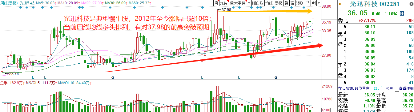 光迅科技周K线: